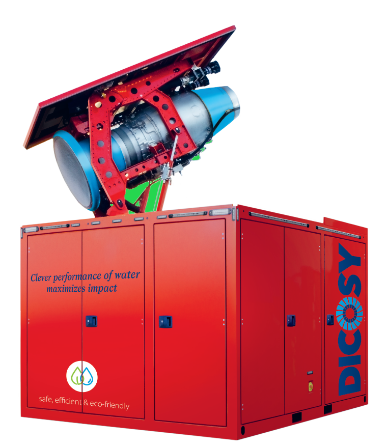 Combining jet engine and spray jet technologies, the DICOSY THJ is the solution for large scale industrial complex fires, chemical/toxic fires/spillage and oil fires. Now all housed in a container construction, the THJ-Box comes as a modular unit that can be easily integrated onto any platform or installed at a selected location.
